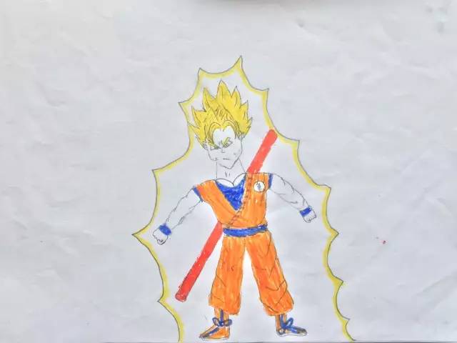 小朋友也许也是一个漫画迷,也想像我们的悟空一样拯救世界!看这头发,应该还是超级赛亚人1,一阶段的超级赛亚人还是很帅的,噗哈哈~