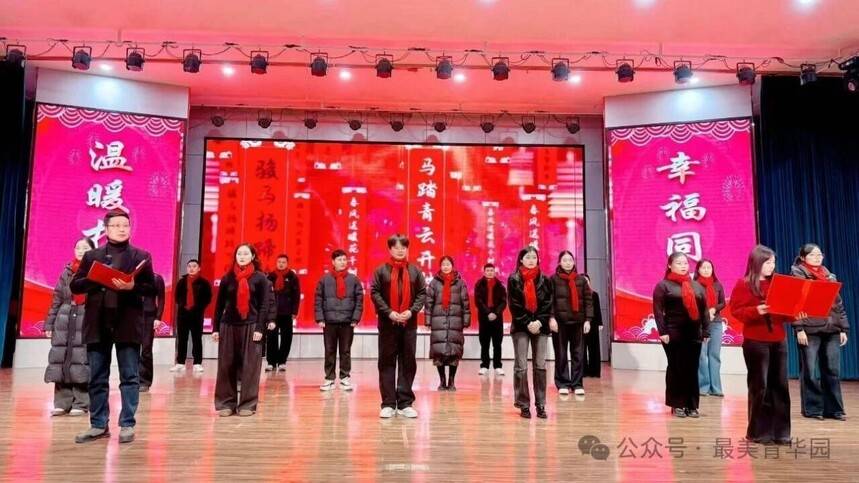 最后,九年级教师团队用温暖的歌声,诠释了育华园大家庭的凝聚力与向心力,“相亲相爱”的旋律,成为了年会最动人的注脚。